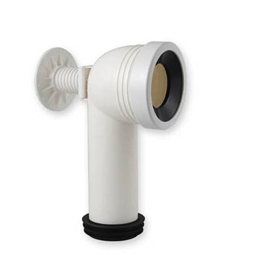 manguito curvo conexión wc Ø90-110mm a red sanitaria, recortable para fijar con tornillos a pared, con junta labiada para insertar a presión.