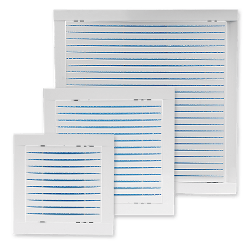 rejilla-trampilla cuadrada 315x315 mm con filtro contra polvo o insectos, fabricado en termoplástico color blanco.