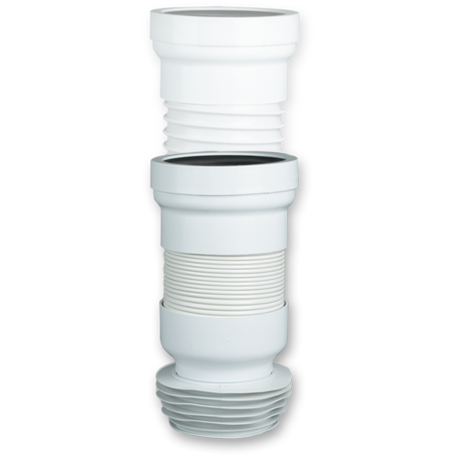 manguito para conexión del wc Ø90-110mm a la red sanitaria, extensible 230-420mm, con junta labiada para insertar a presión.