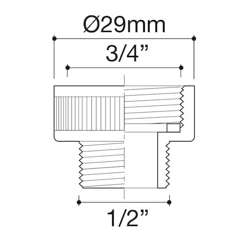 reductor para grifo con salida 3/4" para conectar una rosca de 1/2" (habitual flexible de ducha).