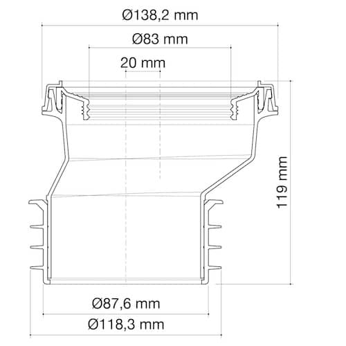 manguito wc excéntrico 20 mm Ø90-110mm para conexión del wc a la red sanitaria, para insertar a presión.