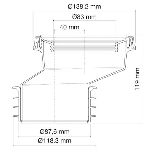 - excéntrico: permite pequeños desalineamientos entre taza y desagüe: 40 mm.