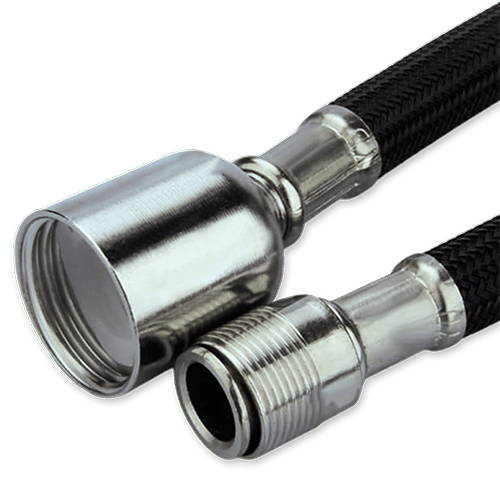 manguera flexible para grifo de cocina con mango extraíble. 1,25 m. Conexión a grifo: M15/100. Conexión a mango: H1/2" articulada. Fabricado con trenzado de nylon reforzado.