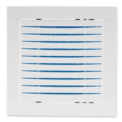 rejilla-trampilla cuadrada 165x165 mm con filtro contra polvo o insectos, fabricado en termoplástico color blanco.