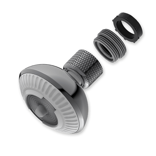 • 2 jets: laminar antisalpicaduras – aireado ahorrador, se cambia el tipo de rociado girando el rociador con la mano.