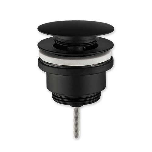 válvula clic clac flat black, montaje UNIVERSAL con tornillo para lavabo con o sin rebosadero, de fácil mantenimiento, fabricada en latón negro mate.